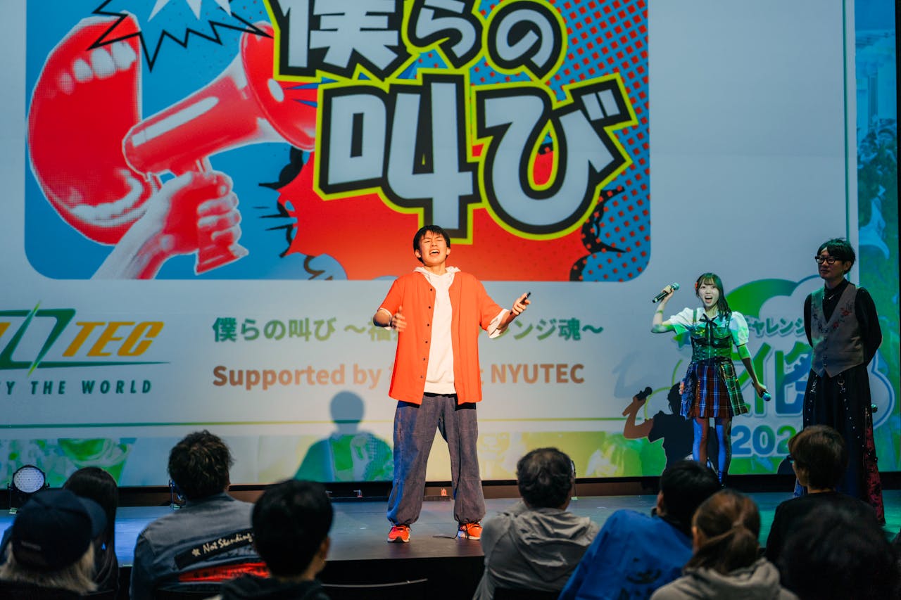 若者たちが日頃の思いや夢、挑戦への気持ちをステージから全力で叫びました。NYUTECの石橋社長も自ら想いを叫び、自分が所属する団体の仲間への感謝を涙目になりながら伝えた男子高校生、ストレートな愛の告白など、各々が心から叫ぶ姿に、聞いている私たちも心打たれるものがありました。