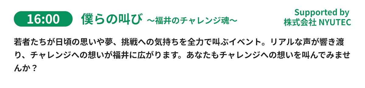 福井で活躍する若者たちの“チャレンジ”や“活動”を応援する文化祭です。