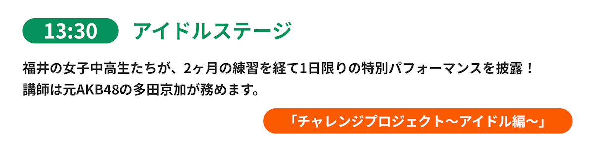 福井で活躍する若者たちの“チャレンジ”や“活動”を応援する文化祭です。ステージ発表、活動展示、ショップ出店などチャレンジする場が盛りだくさん!